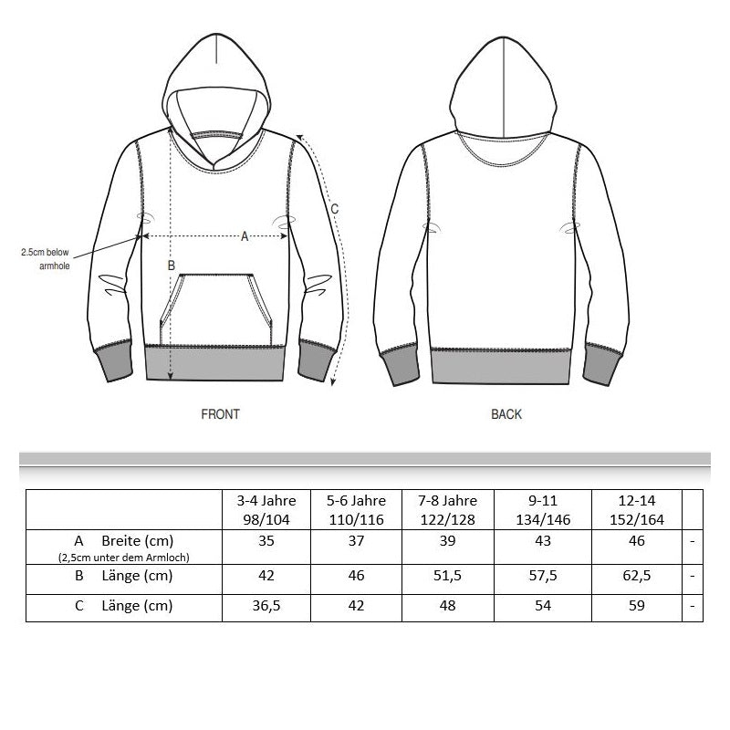 Größentabelle - Kidshoodies