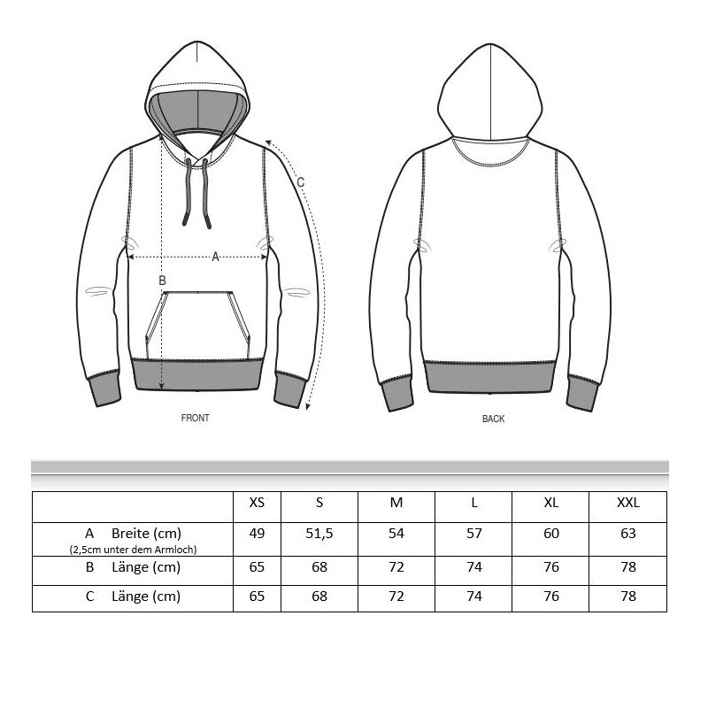 Größentabelle - Hoodies