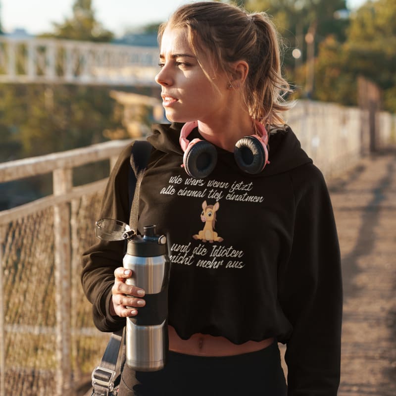 Ein super witziger neuer Hoodie mit dem Spruch: Wie wärs wenn jetzt alle einmal tief einatmen, und die Idioten nicht mehr aus.