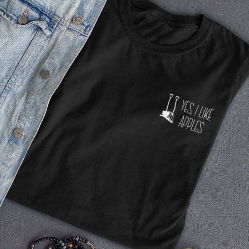 Hier findest Du den Spruch "Yes, I Like Apples" neben einem kleinen Haufen Pferdeäpfel.